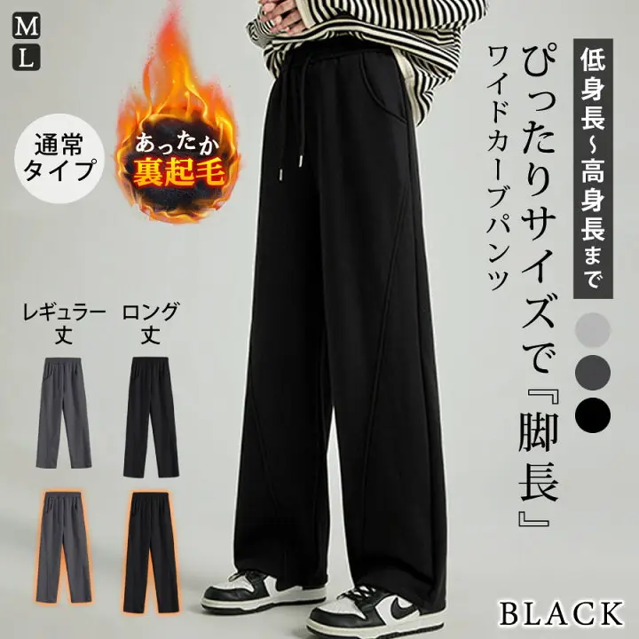 | 選べる4タイプ! ワイドカーブパンツ 絶妙なカーブシルエットで 下半身全体を確実にカバーします。 自分にぴったりのサイズが 見つかる選べる着丈! さらにオールシーズン履ける 通気性の良い通常タイプと 暖かい裏起毛タイプまで 豊富なバリエーションから選べます。 |